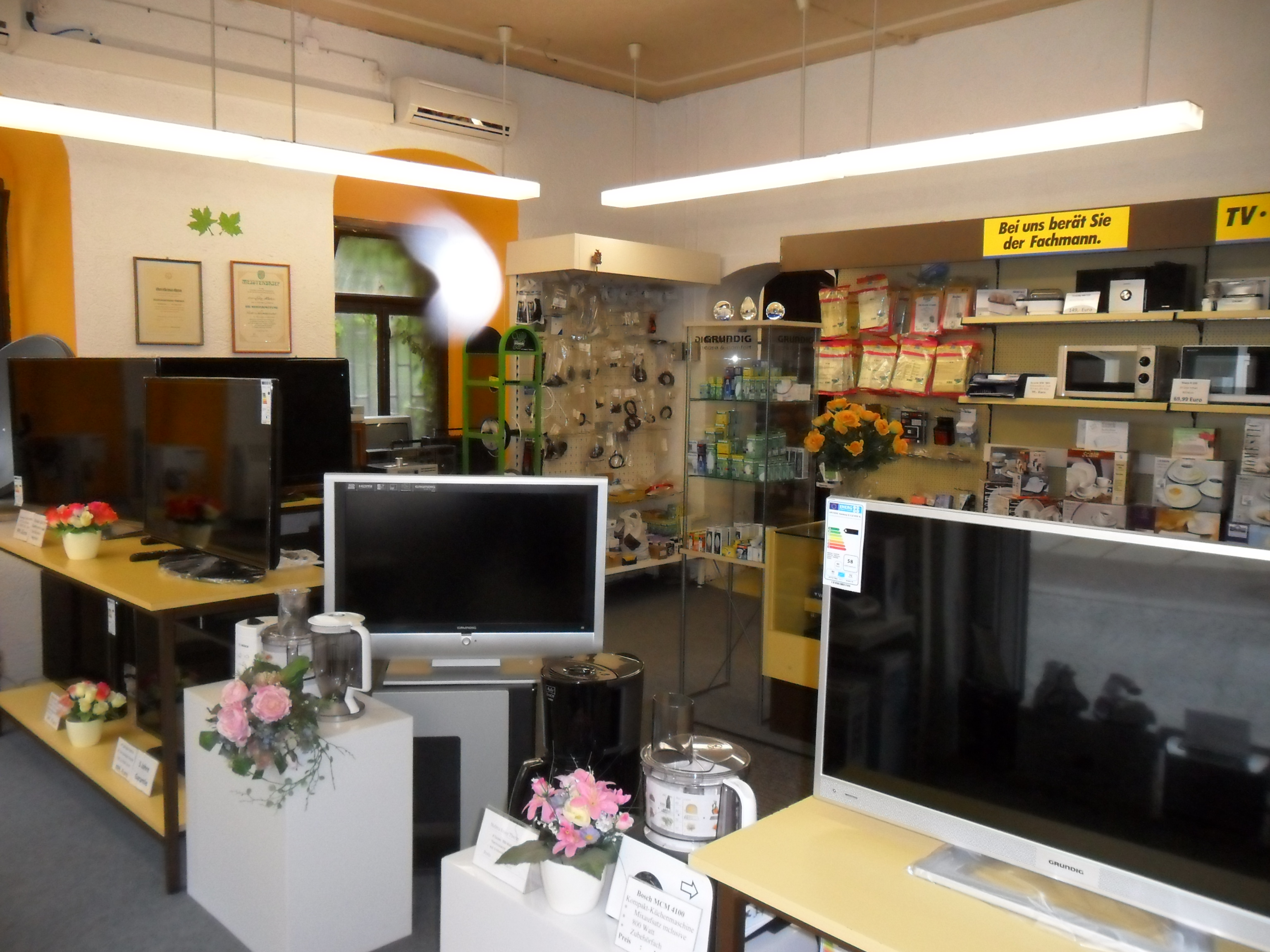 Deshalb verkaufen wir auch nur solche Geräte, von deren Qualität wir selber überzeugt sind. Hochwertige, energieeffiziente, zukunftssichere Technik, die Ihnen das Lebens angenehmer macht und an der Sie lange Freude haben. Dazu bieten wir Ihnen unseren umfassenden Fachhandels-Service und die Möglichkeit, die Geräte in unserem Geschäft in natura anzuschauen, anzufassen und nach Möglichkeit auch auszuprobieren.
